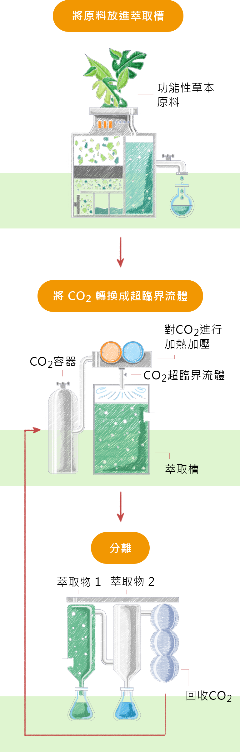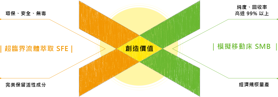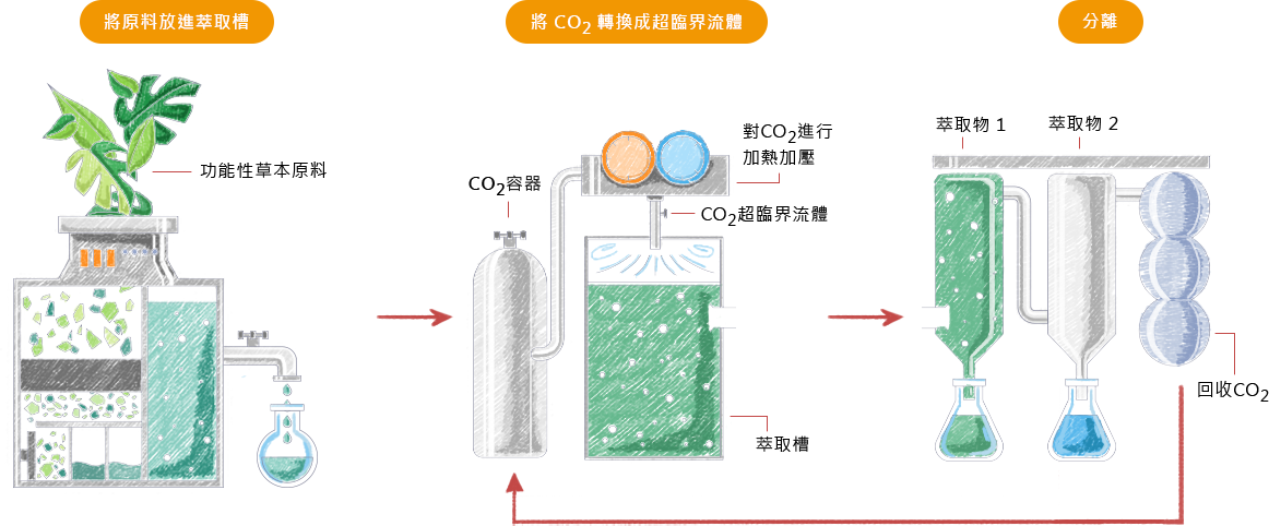 超臨界流體萃取技術,是一低溫高壓無氧之萃取技術,以超臨界流體溶解出所需的活性成分。